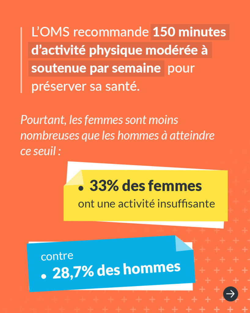 ➡️ 33,8 % des femmes ont une activité insuffisante, contre 28,7 % des hommes.